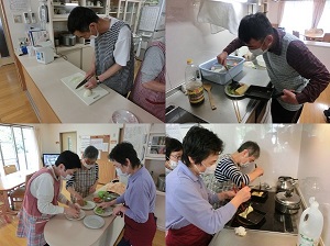 グループホームの第2曙ホームでは 毎月、料理教室を行っています。 5月はオムレツを作る事となり、 具材カットや卵焼き等を行っています。 若干、悪戦苦闘する場面もありましたが、上手く 調理できて美味しい昼食となったようでした。
