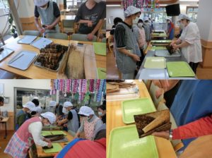 吹上学園では5月28日の余暇時間に季節の食べ物を楽しむ 一環としてちまき作りを行いました。 スタッフからアドバイスを受けながら もち米を竹の皮に入れて巻いていきました。 出来上がったちまきは、自分たちのおやつとしていただき、 皆さん美味しそうに食べていらっしゃいました。