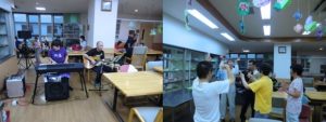 その中でおやつを食べ、七夕にまつわる紙芝居や歌を歌ったりと