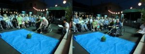7月から提灯づくりの準備が始まり、入居者の方たちに色塗りをお願いし、