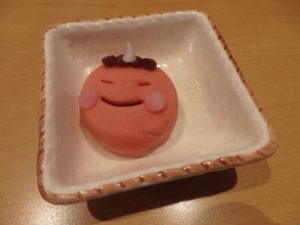 おやつにはかわいい鬼の顔の和菓子を「食べるのがもったいないね」と