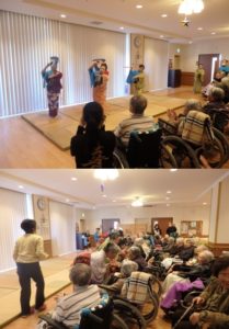 歌を口ずさんだり、手拍子を入れたりと利用者の皆さんもとても喜ばれ、